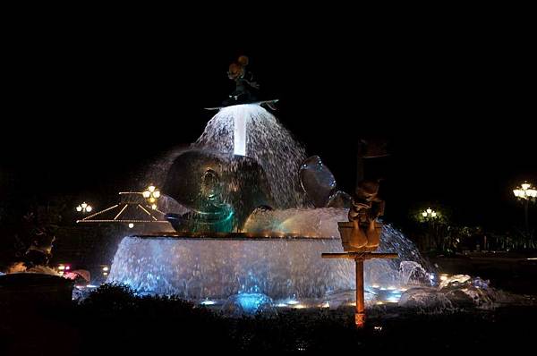打燈後的可愛米奇噴水池