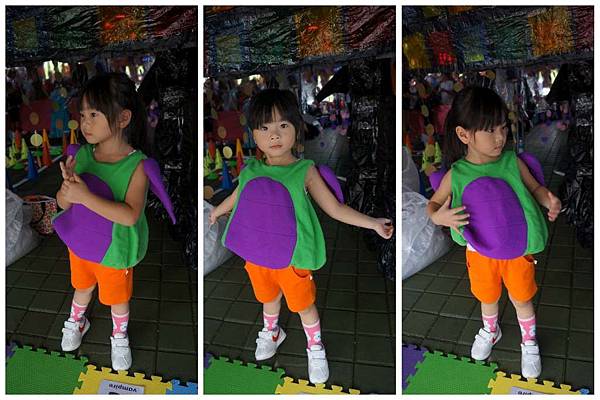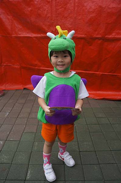 她自己就說那她扮恐龍好了...因為家裡只有恐龍和警察的服裝..哈