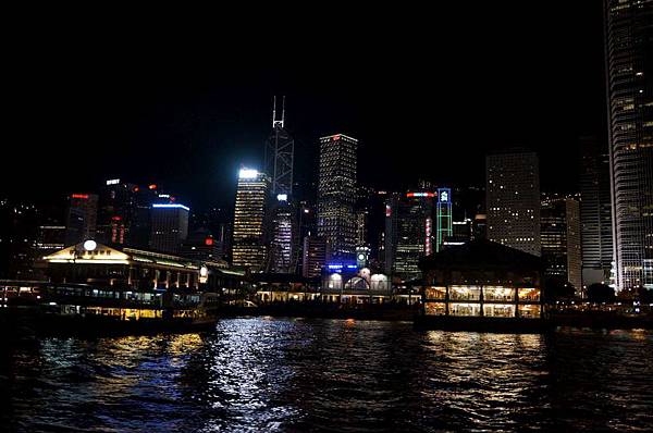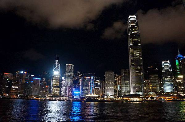 大樓的燈光使維多利亞港兩岸閃耀起來