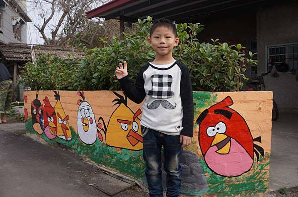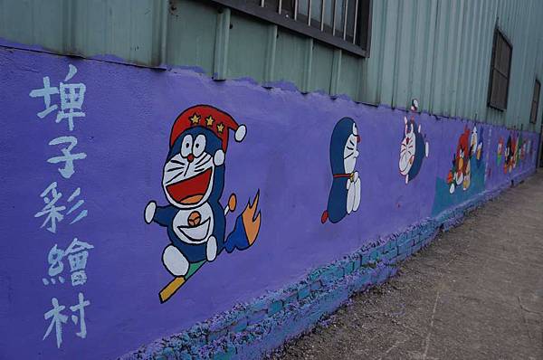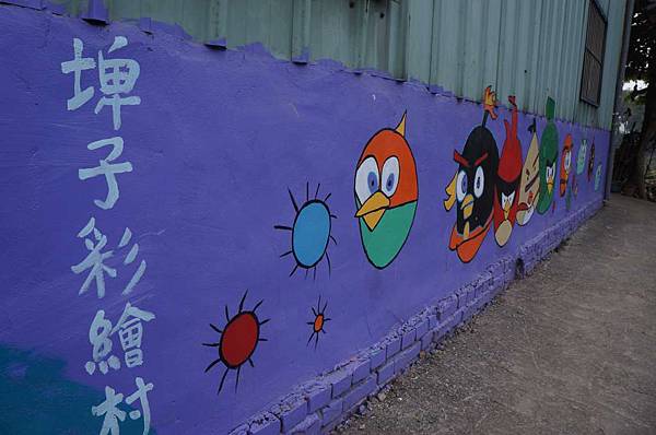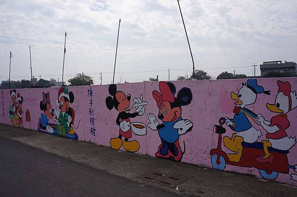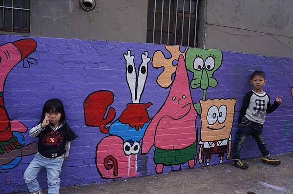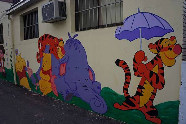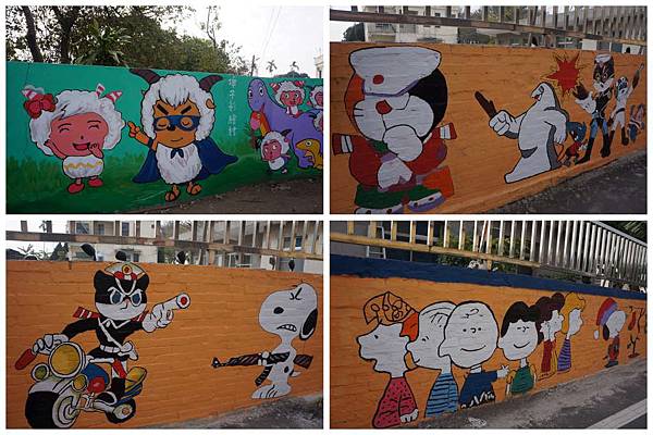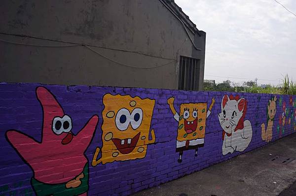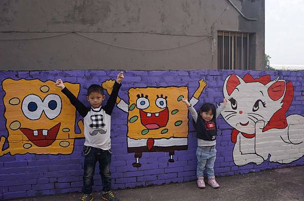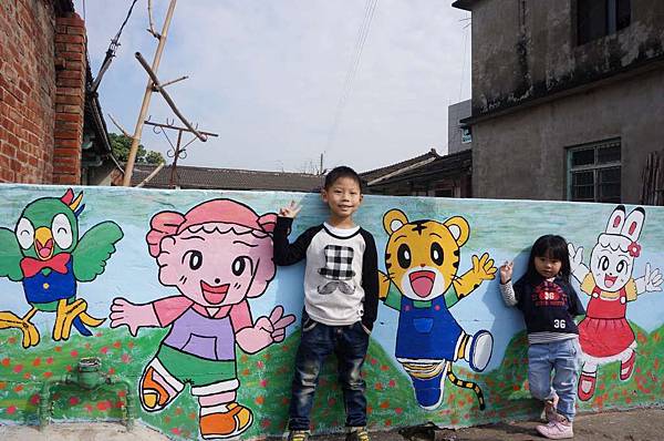 這村子路的二旁牆上畫滿了可愛的卡通人物