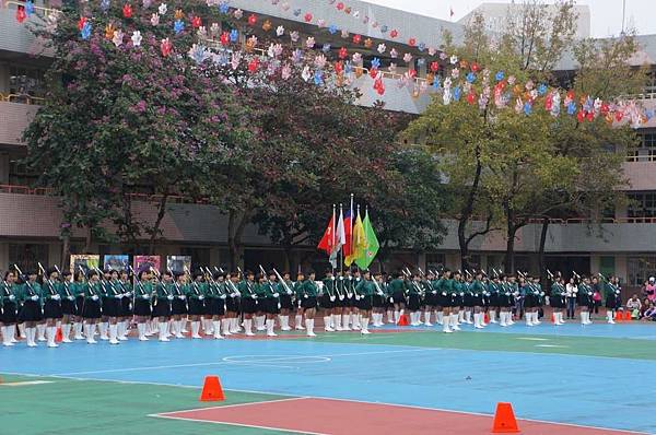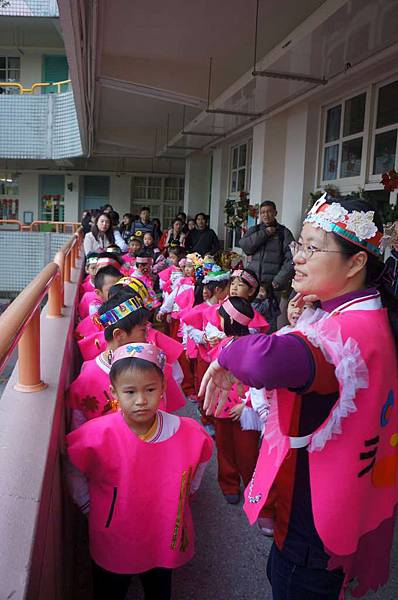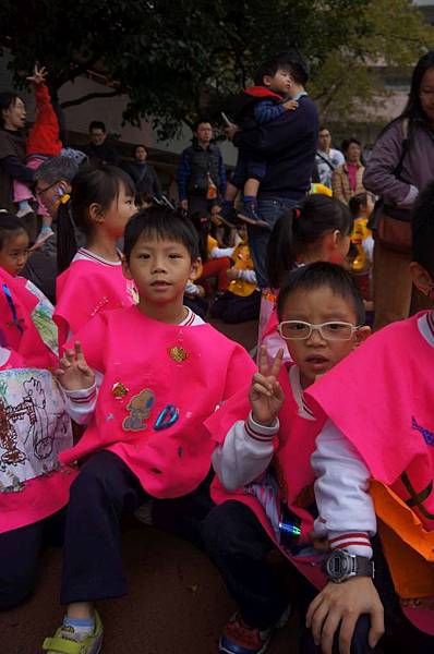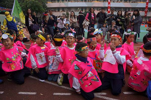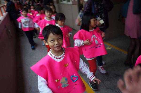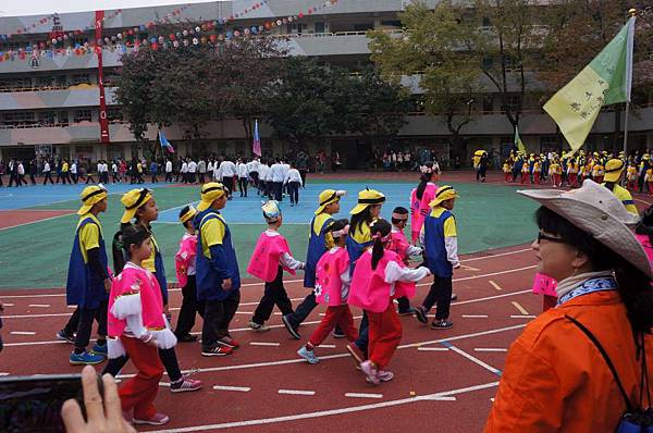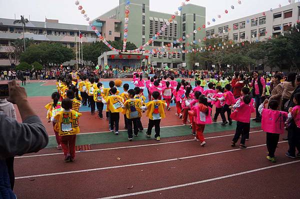 由六年級大哥哥大姐姐牽著一年級的小朋友繞操場一圈