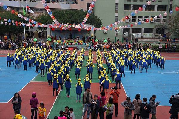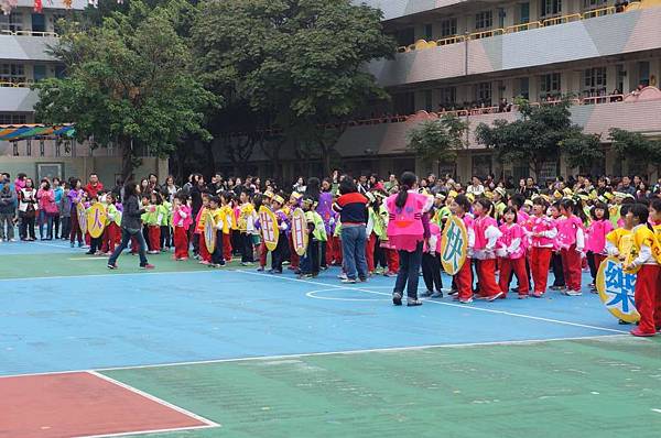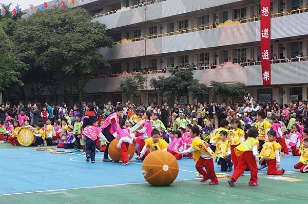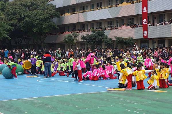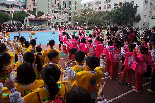 等六年級學長姐表演完就輪到一年級滾大球比賽