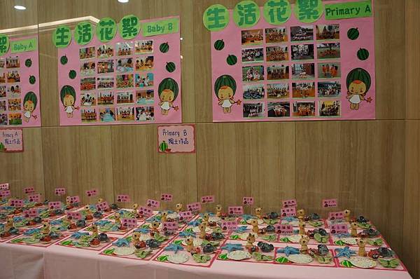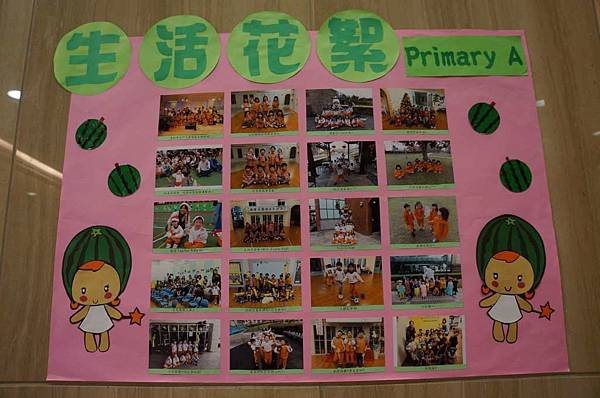 二樓牆上貼著小朋友在學校生活的花絮照片