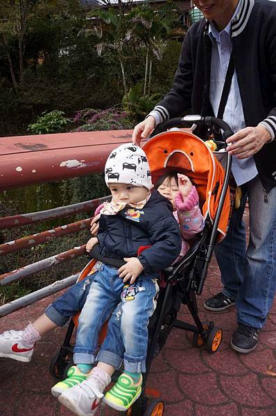 走一走咪咕終於肯下來推車讓融融坐了..呵
