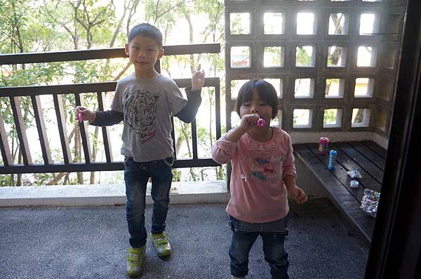 一進門他們二人就急著要吹泡泡