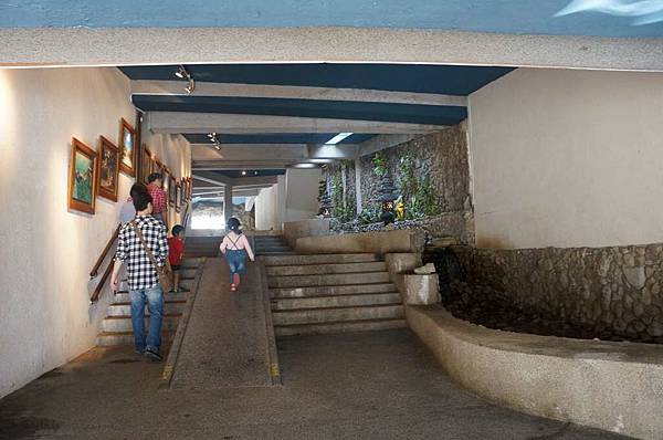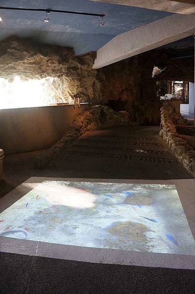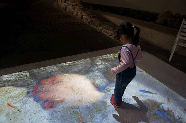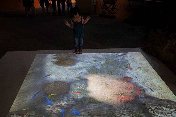 往另一區的通道地上有影音魚兒互動