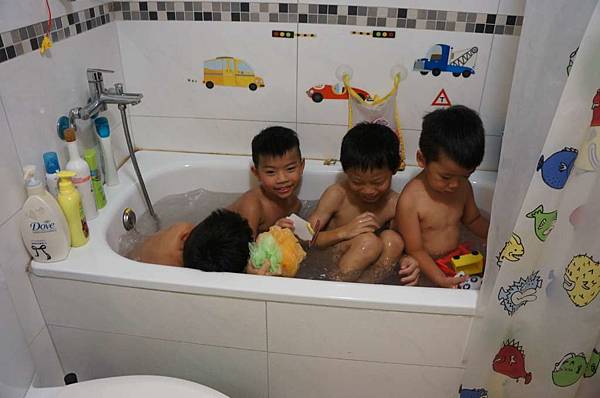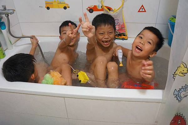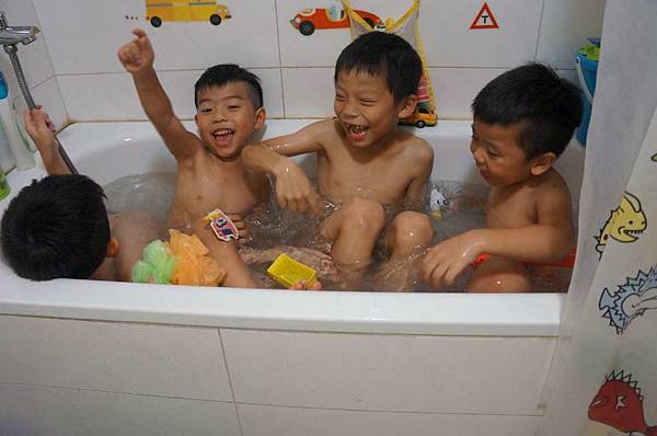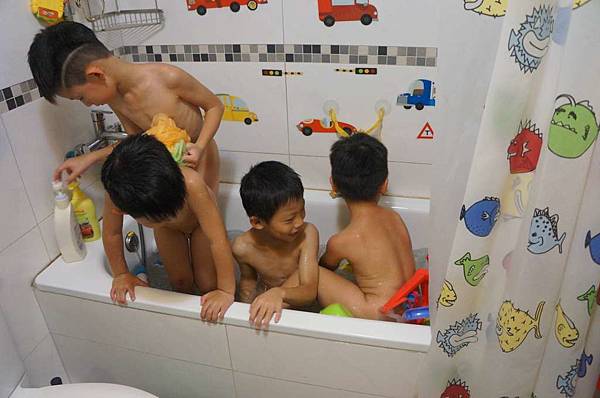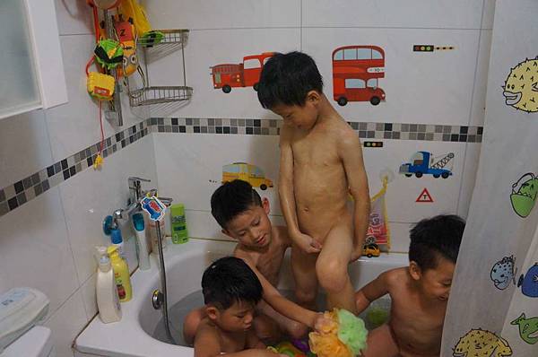 在willis家這四位小男生還一起玩水洗澡