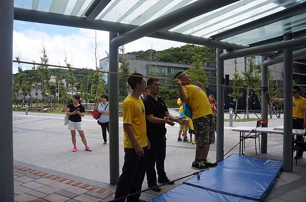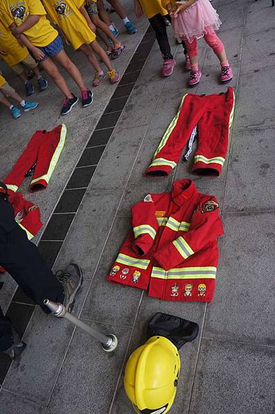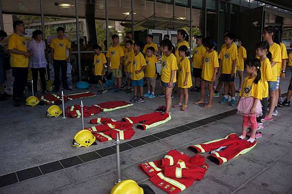 穿上消防衣裝備往前跑一圈回來換下一位..任務就算完成