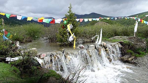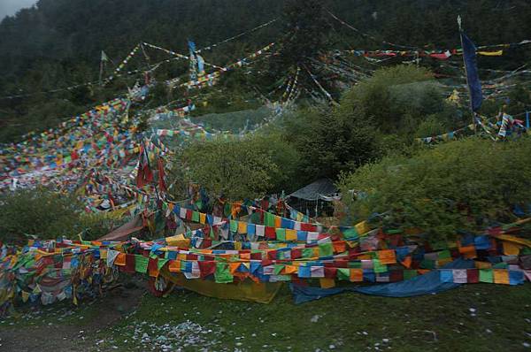 在這真的可以看到五色旗和犛牛頭骨的石堆