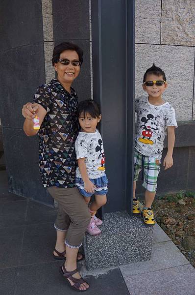 叫比爸幫我們三人拍...因為我們穿親子裝