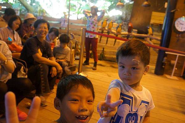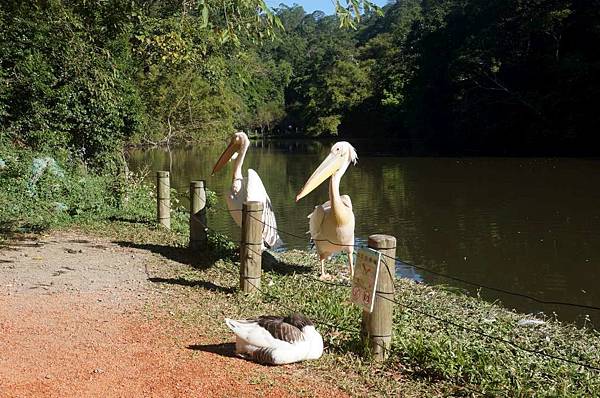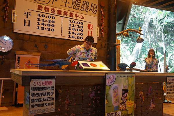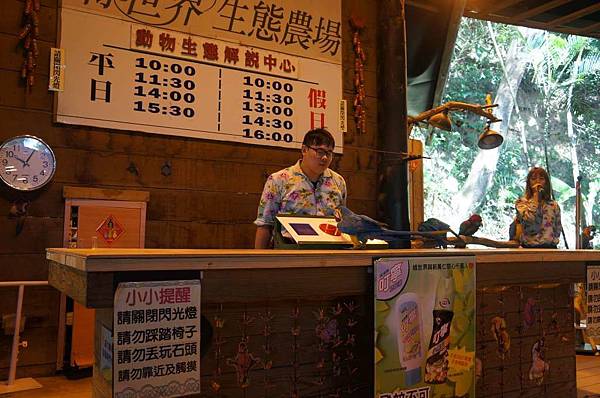 走一小段湖邊後我們就返回走到動物生態解說中心看表演