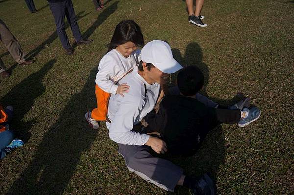 再來是爸媽站著不動...小朋友要將爸媽往後推