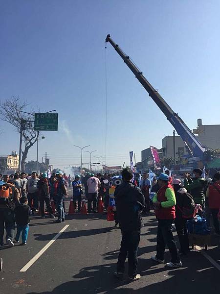 看到這吊車原來是吊鞭炮..等一下媽祖過來時要放