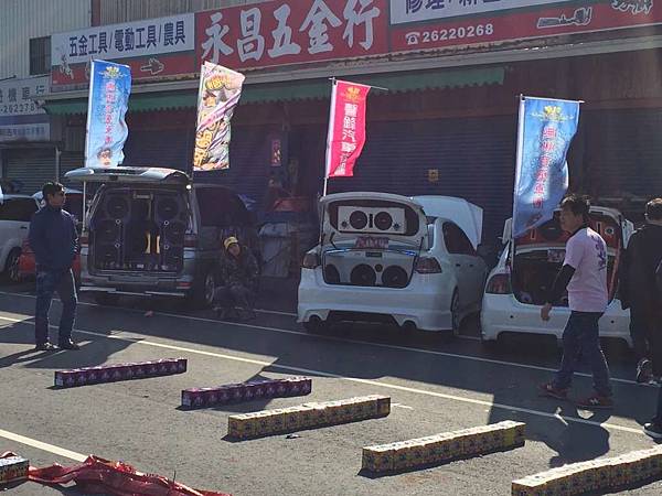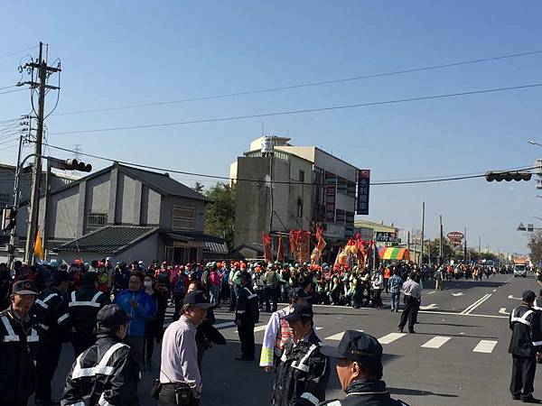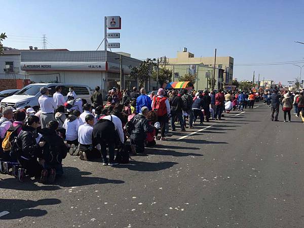 路邊這些車子都是走在媽祖神轎前面的陣頭