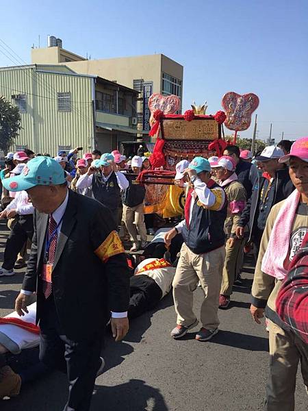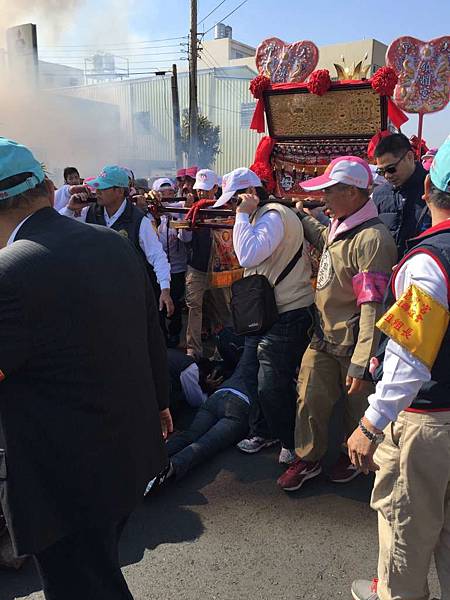 最後神轎就往旁邊走...後頭排隊的人都無法鑽到地轎了