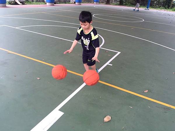 左右倆手拍球..比比說好難喔..球會一直跑出去