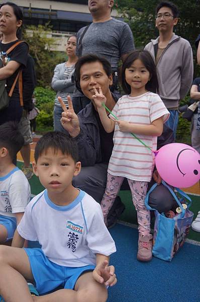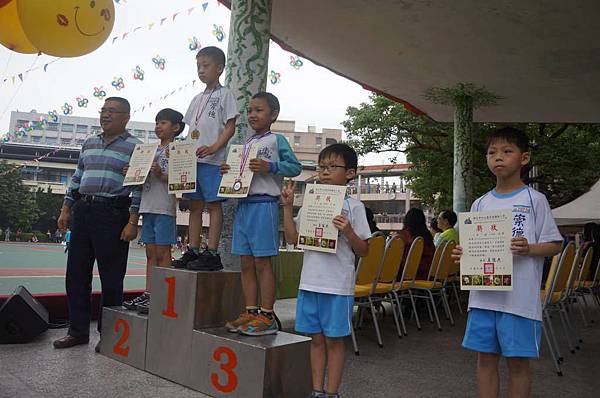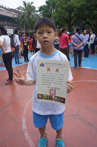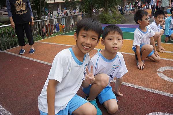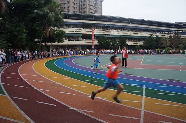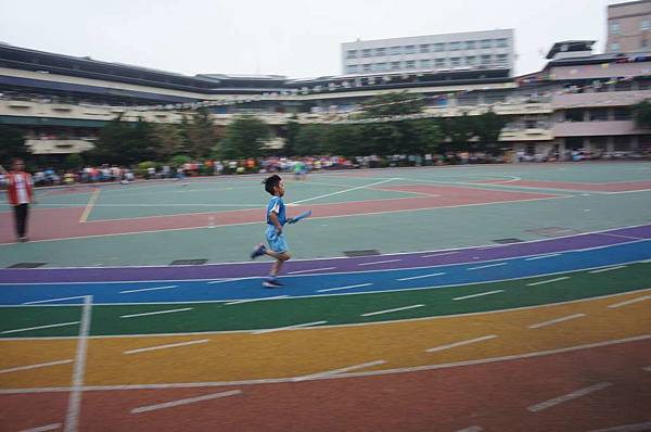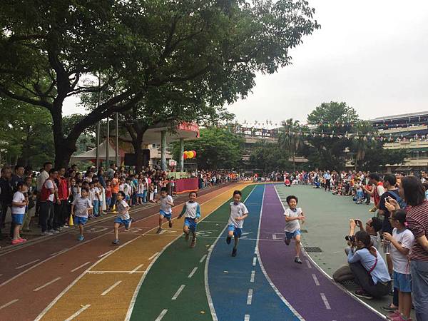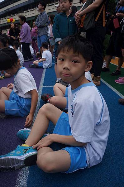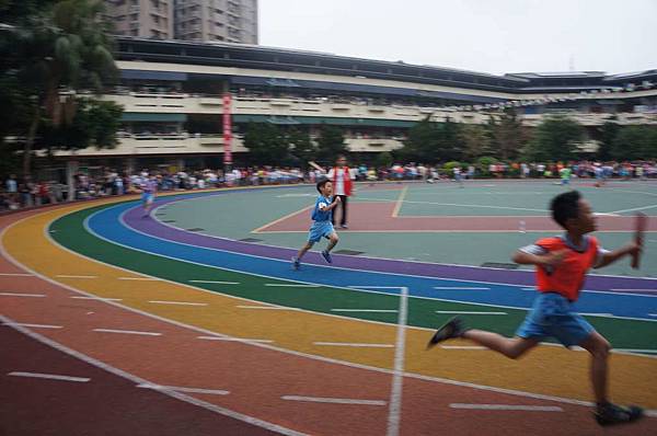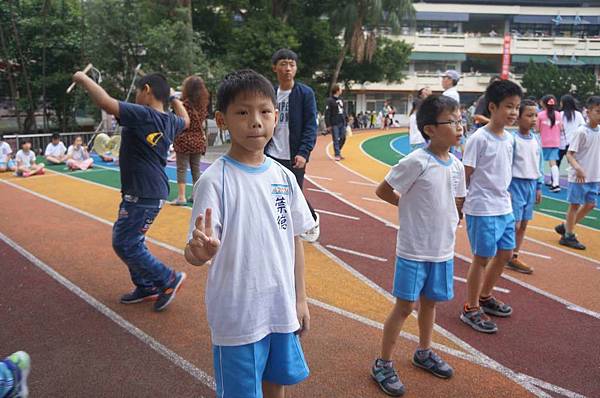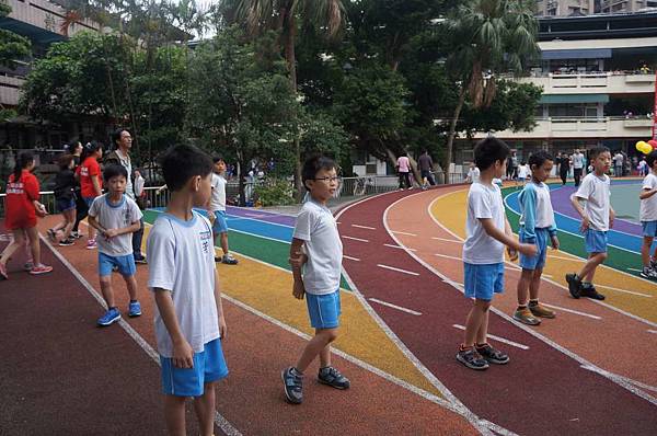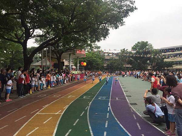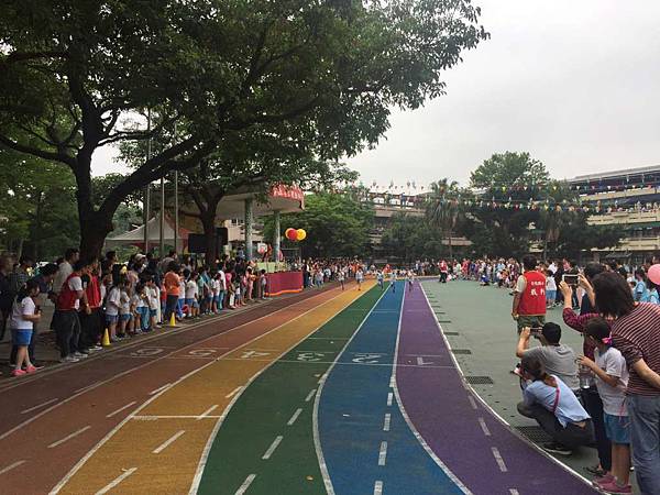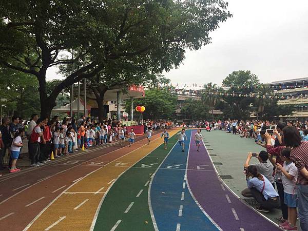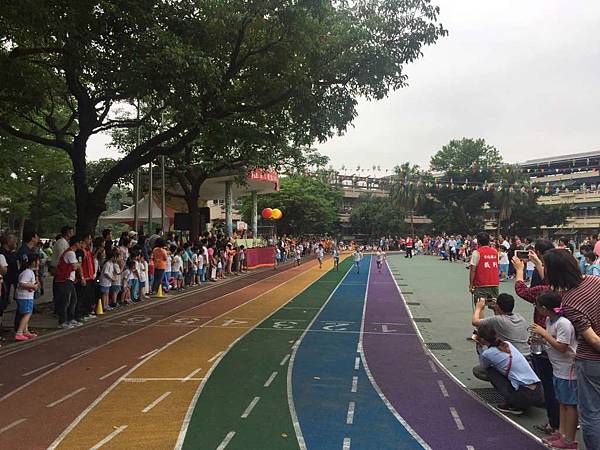 拿到獎狀後我們就在操場邊看一下同社區肯尼參加三年級男子組400公尺接力賽