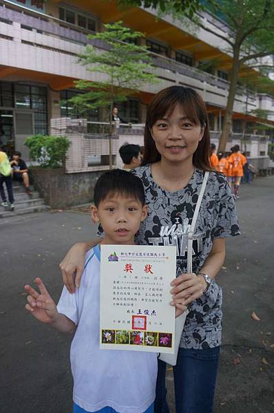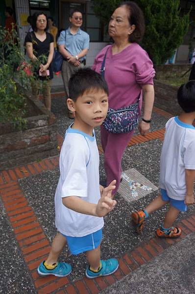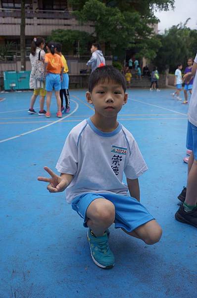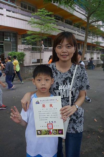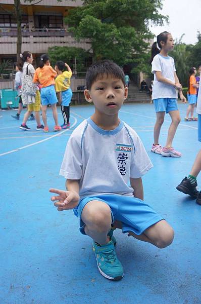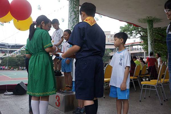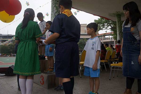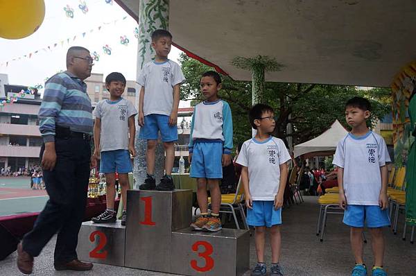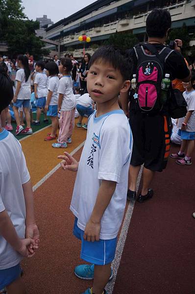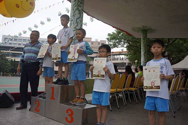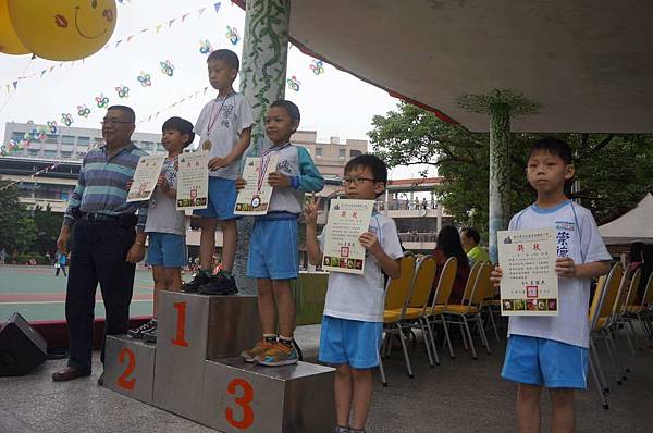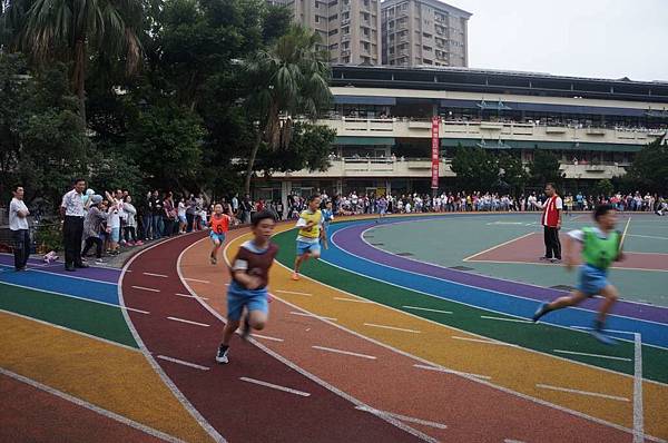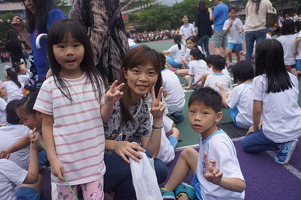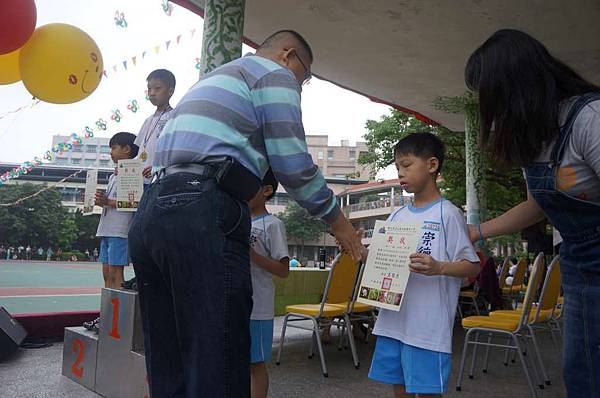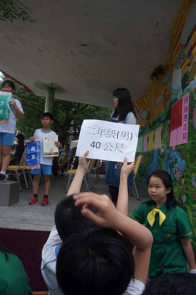 拿到獎狀後我們就在操場邊看一下同社區肯尼參加三年級男子組400公尺接力賽