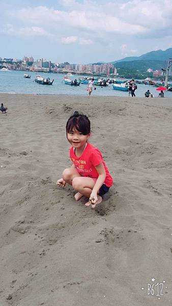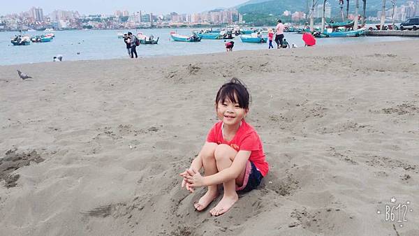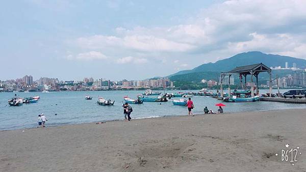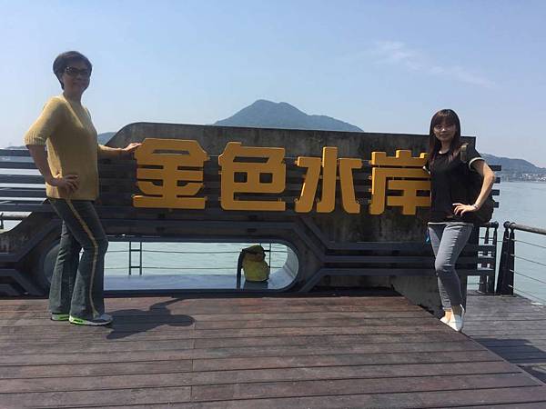 我和老媽坐在一旁看著八里海邊的風景
