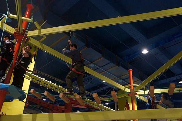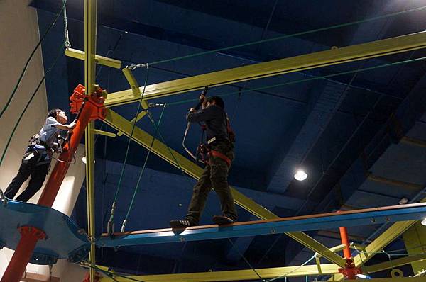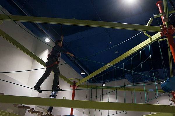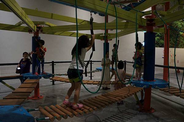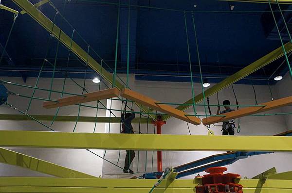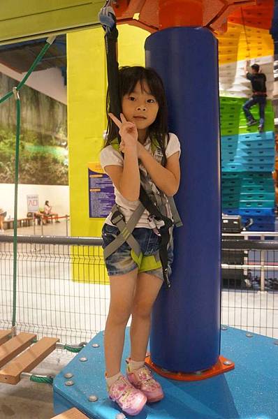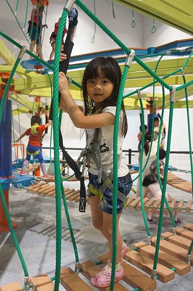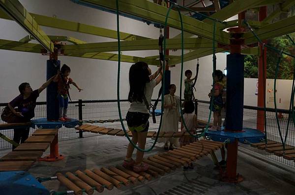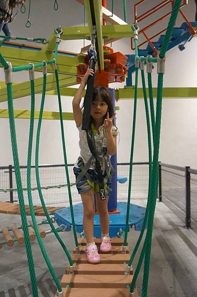 咪咕來玩小孩繩索區...比比超過身高不能玩這區..但大人玩的繩索區比比不太敢玩