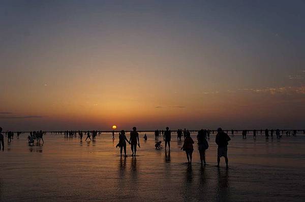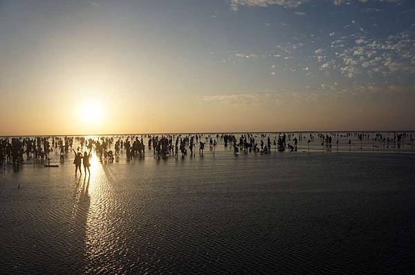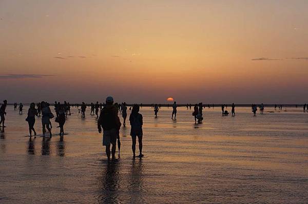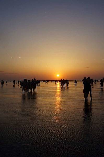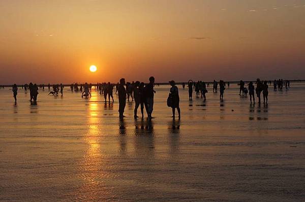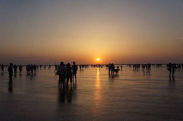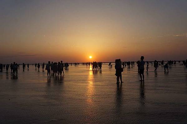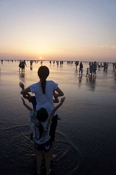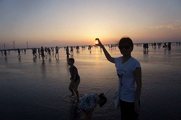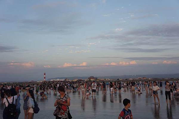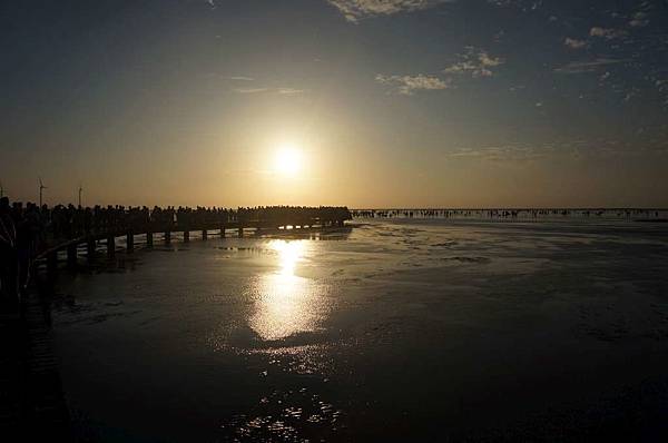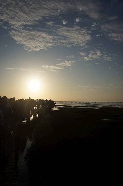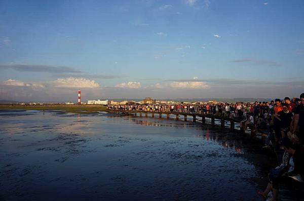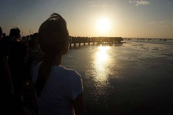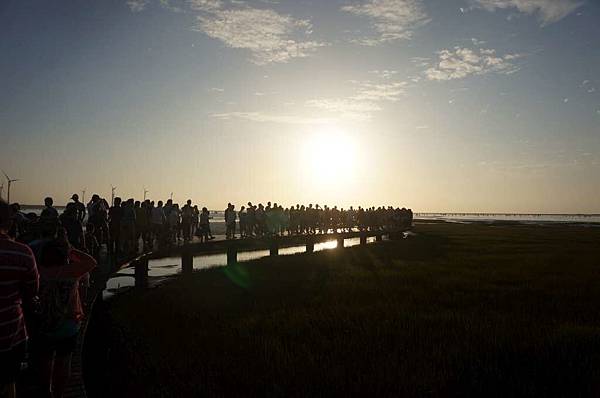 一到高美溼地入口...遠看紅紅的大太陽及密密麻麻的人群