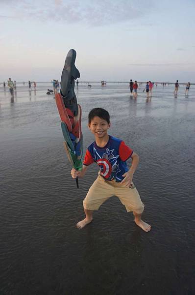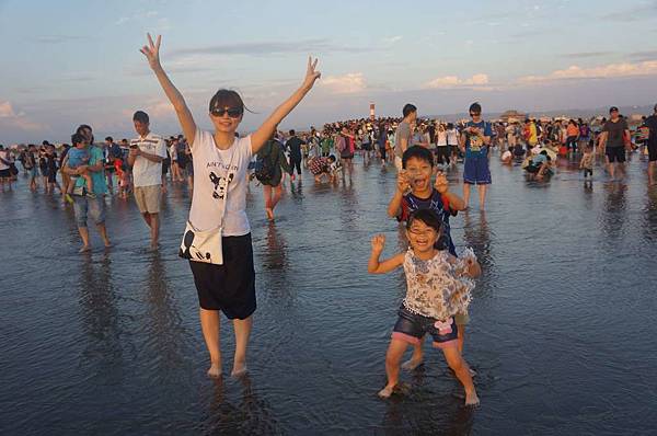 也好多爸媽帶小孩來玩水...挖沙工具不可少