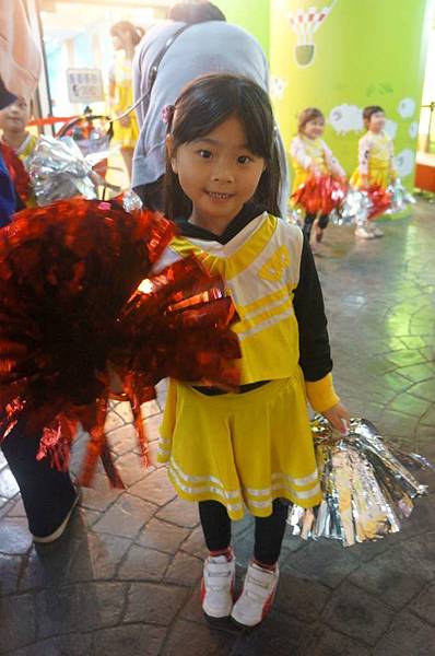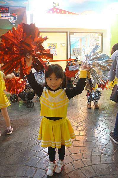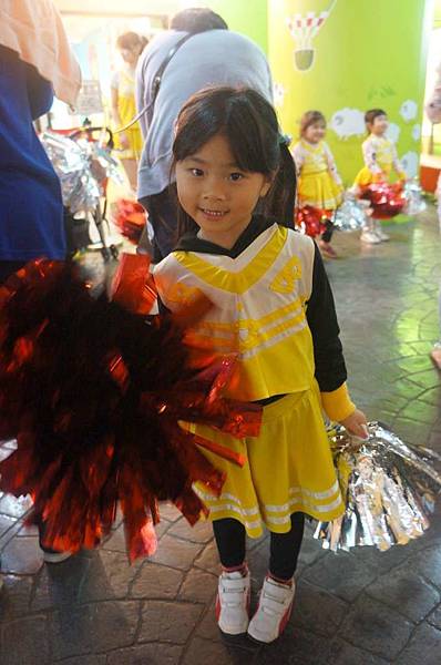因為她看到其她小朋友都有脫掉長褲...就穿短裙