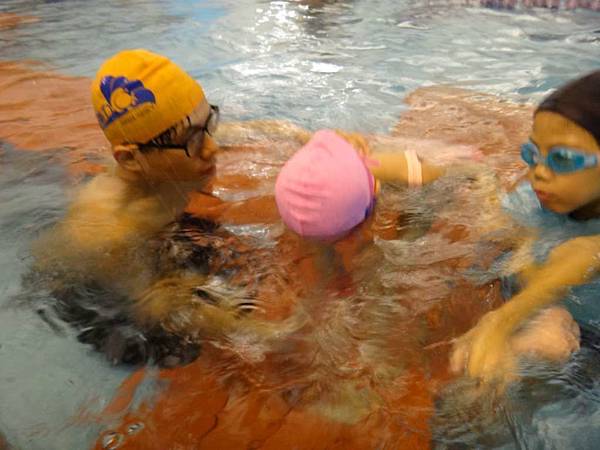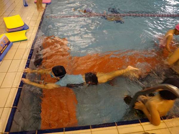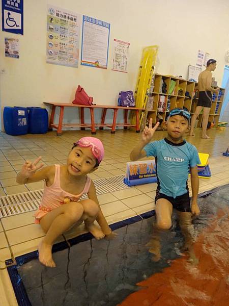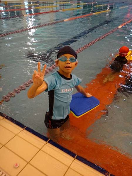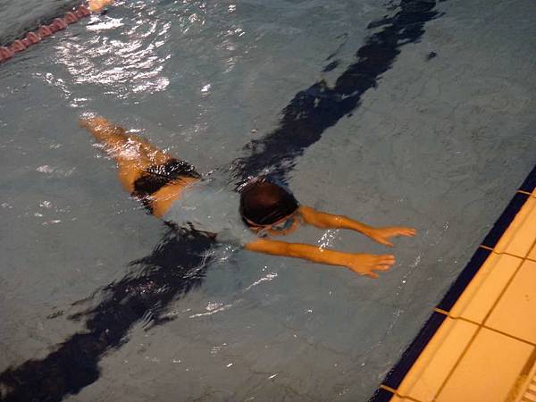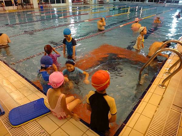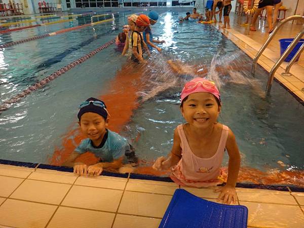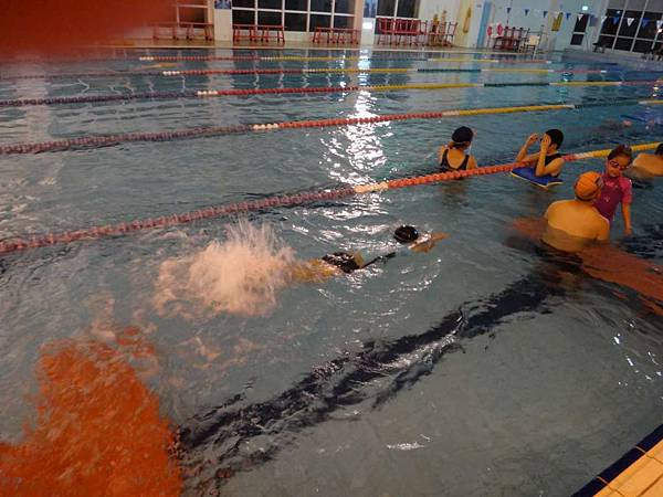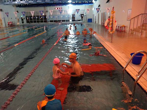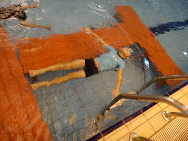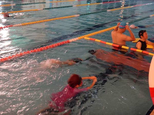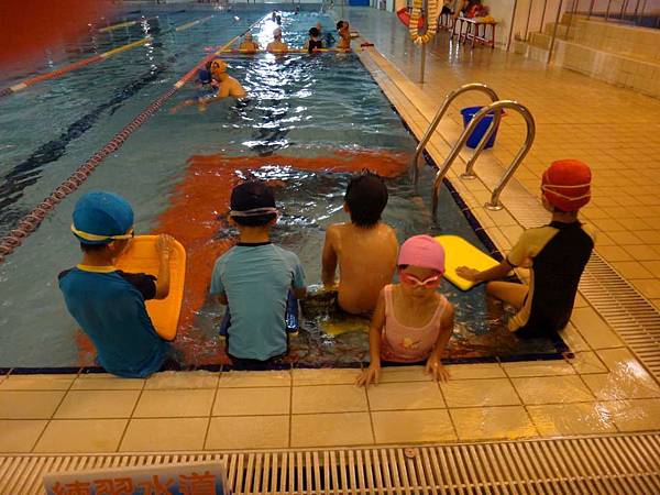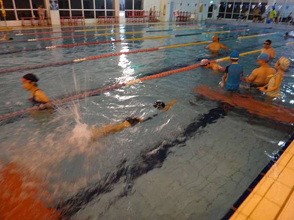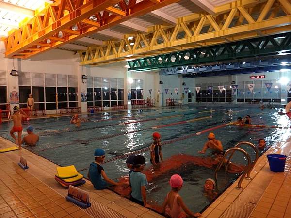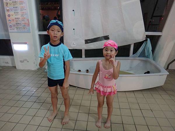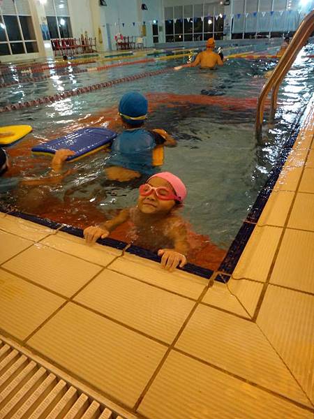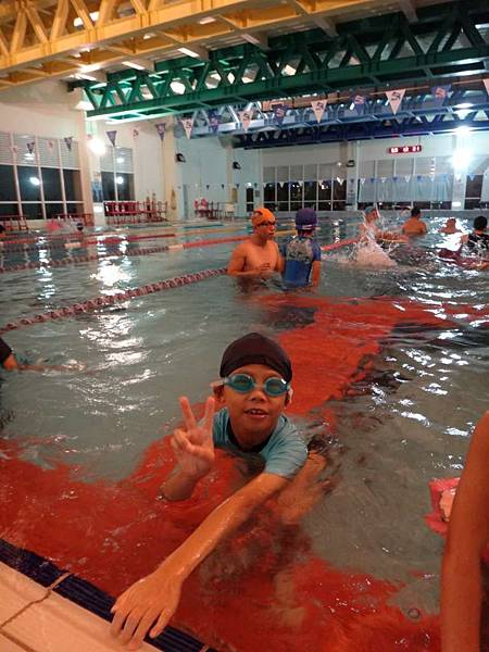 早上我們也行程滿檔後晚上我就帶他們來學游泳