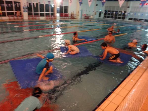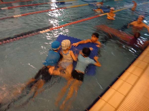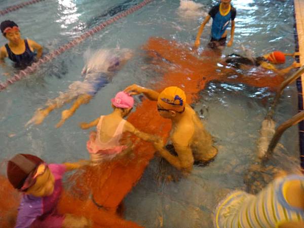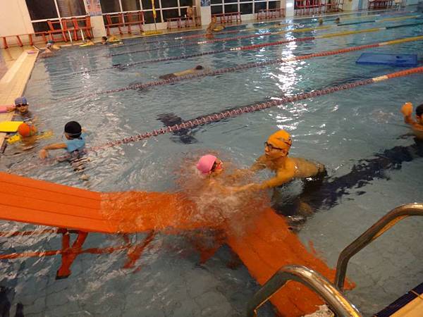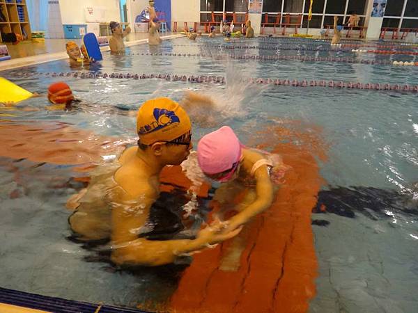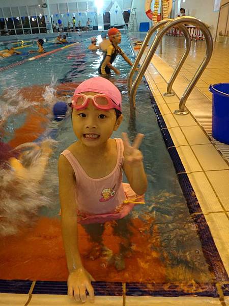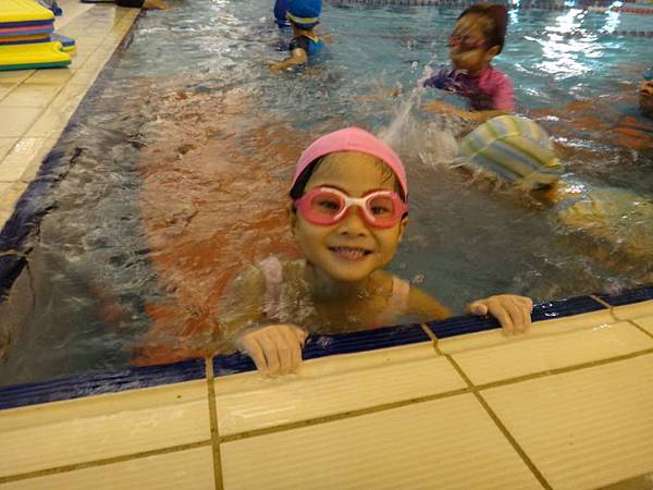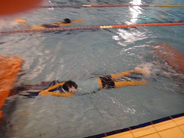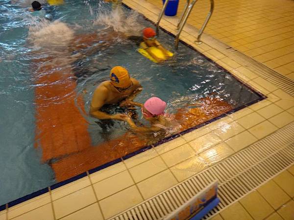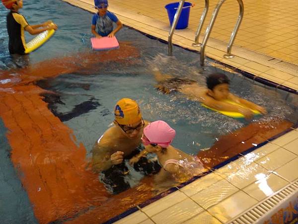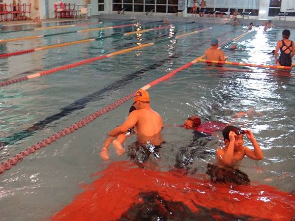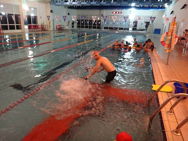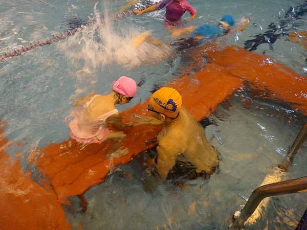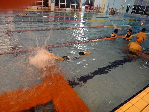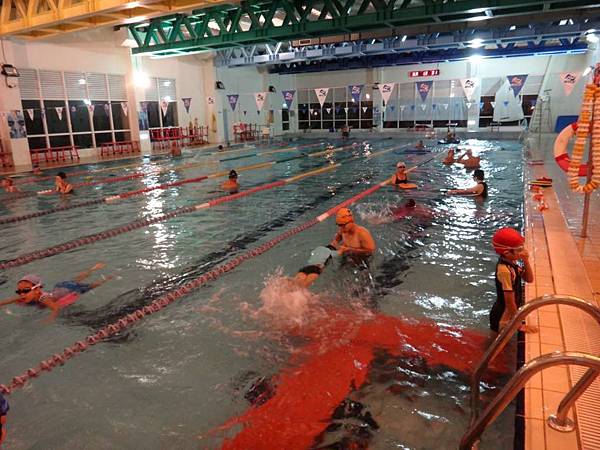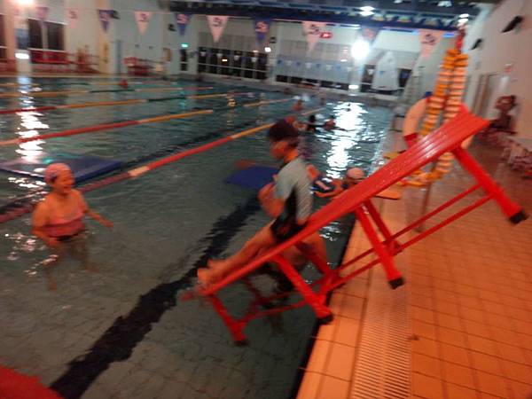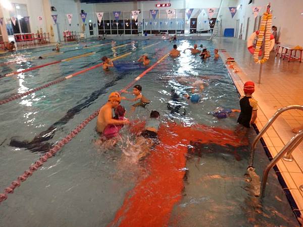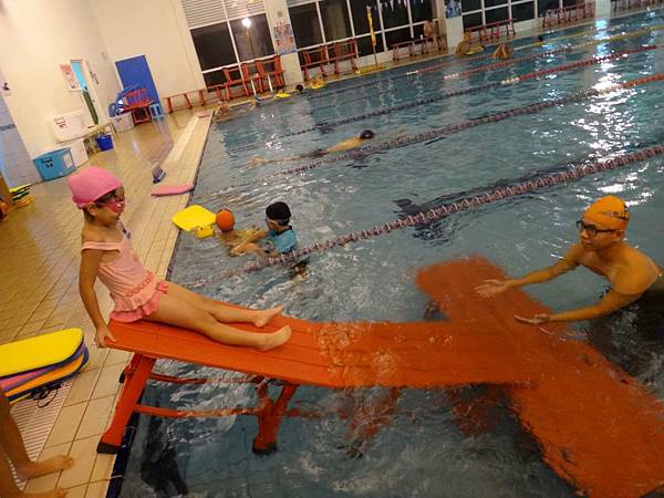早上我們也行程滿檔後晚上我就帶他們來學游泳