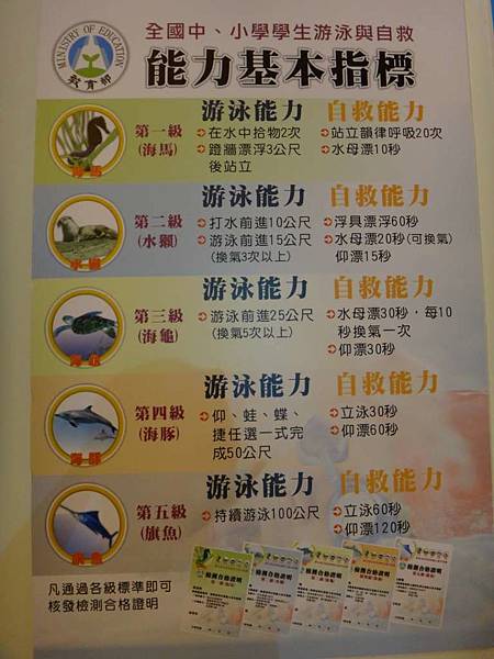 全國中小學學生游泳與自救能力基本指標..總共有五級
