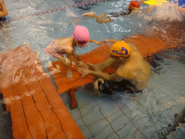 教練還在水中和咪咕玩遊戲..讓咪咕完全不害怕