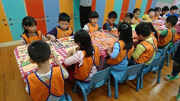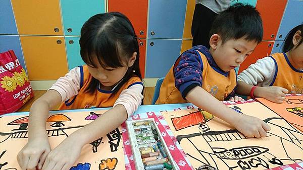 今天的畫畫課是以墨色及蠟筆,運用線條描繪出山水的情境