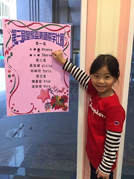 老師傳line給我說:minnie這次英文拼字大賽第一名