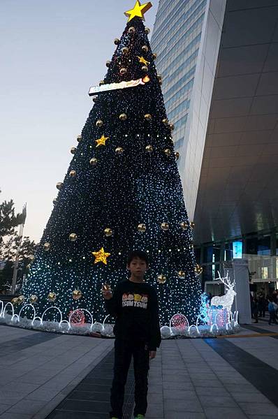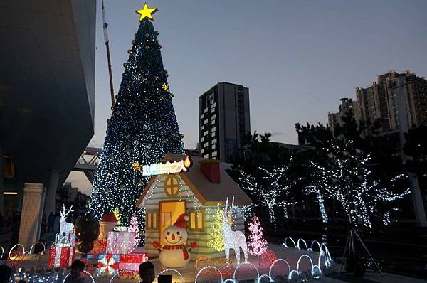 外頭的聖誕樹點燈了