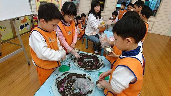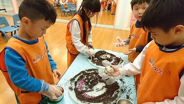 今天的課程很有趣!讓孩子動手做飯糰,孩子的力道拿捏很重要~過程中看到不少飯糰爆裂開。