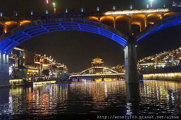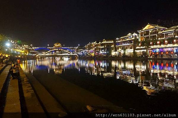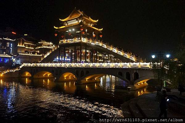 由於回到飯店才八點多,且飯店離古城腳程約15分鐘,於是稍事休息,就出發再訪鳳凰夜景。