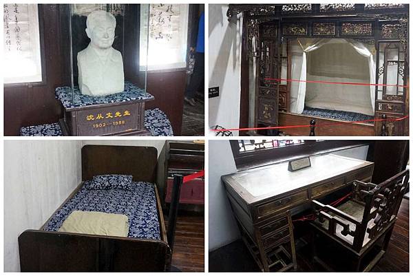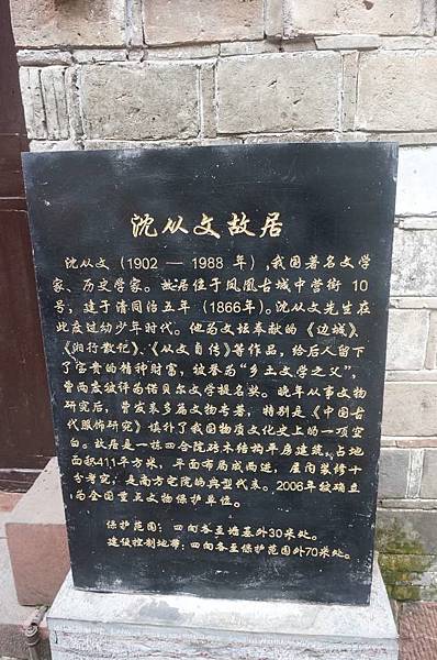 故居始建於清同治五年(1866年),是其祖父沈宏富(曾任清朝貴州提督)購買舊民宅拆除後興建,占地600平方米。故居系木結構四合院建築,房屋是穿斗式木結構,為火磚封砌的平房建築。四合院分前後兩進,中間有用方塊紅石鋪成的天井,兩邊是廂房,共11間。1988年沈從文先生病逝於北京,骨灰葬於鳳凰縣聽濤山下,同年故居向遊人開放。