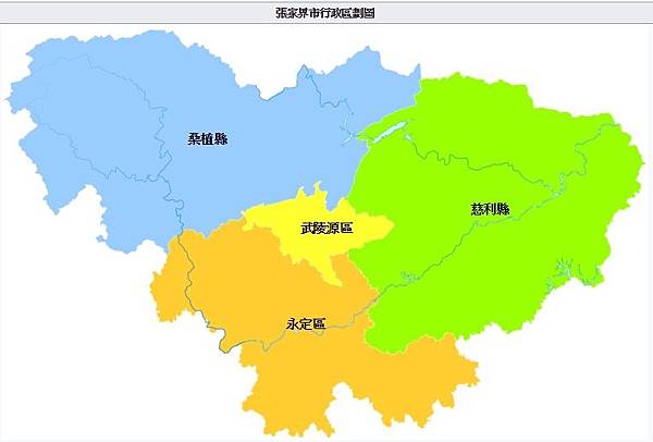全市轄2個市轄區-永定區及武陵源區、2個縣-慈利縣及桑植縣。