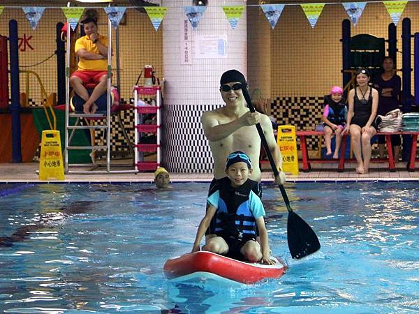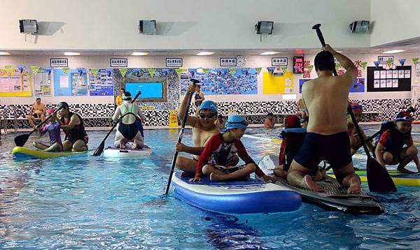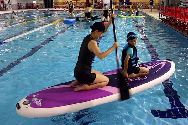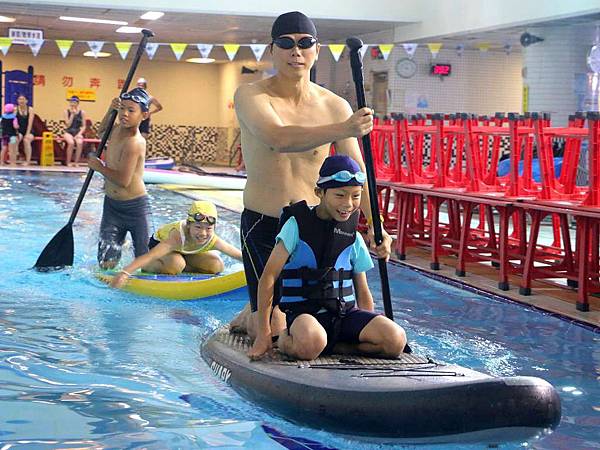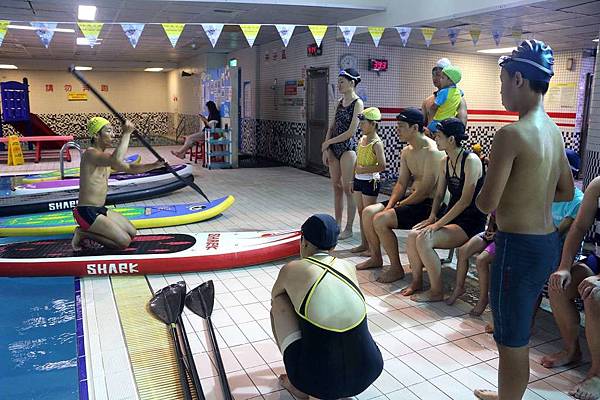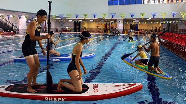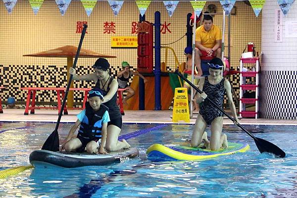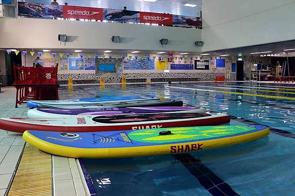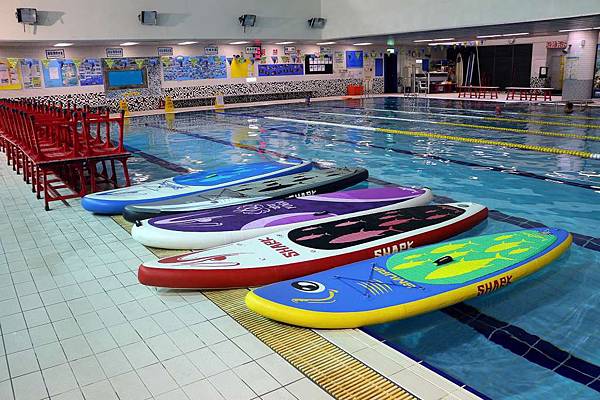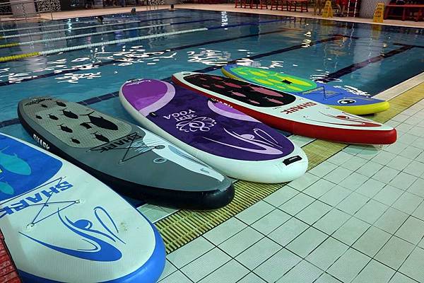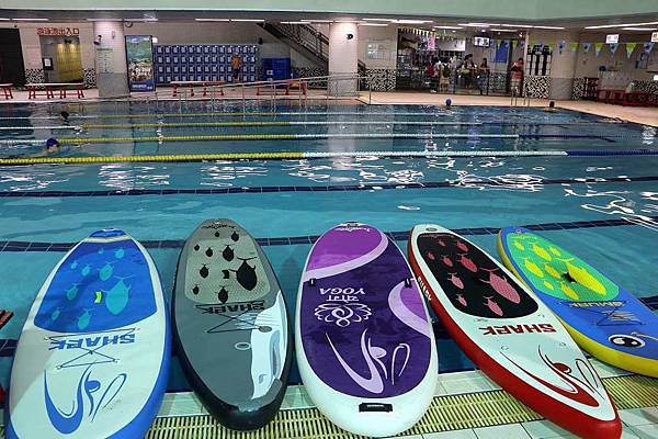 到時間報到後看到泳池邊就放了幾個立槳板子