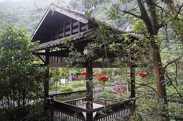相當特殊的造景,晚上會打燈,底下那棟房子就是土寨。