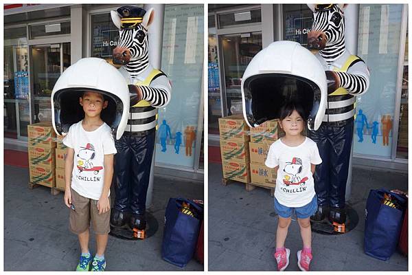 下次先去上廁所..剛好在超商店前有這斑馬警察可拍照