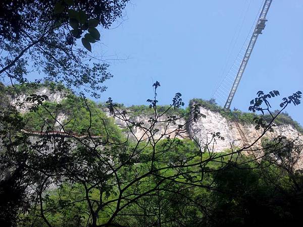 從棧道上回望玻璃橋。