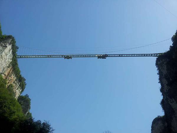 仰望玻璃橋。