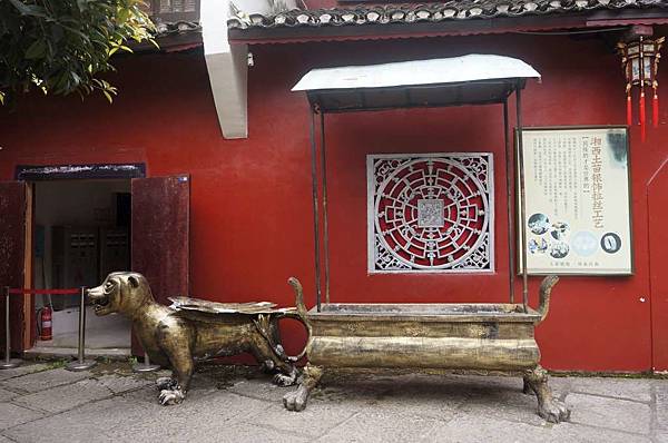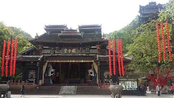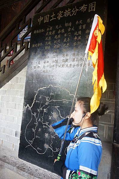 祭祀堂前方則有根高聳的石柱,稱之為"祭祀柱"柱頂有隻老虎,相傳為土家祖先死後變身的~所以,老虎便成為土家人崇拜的動物。