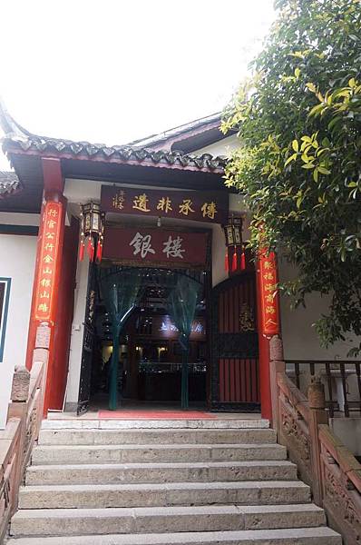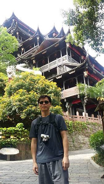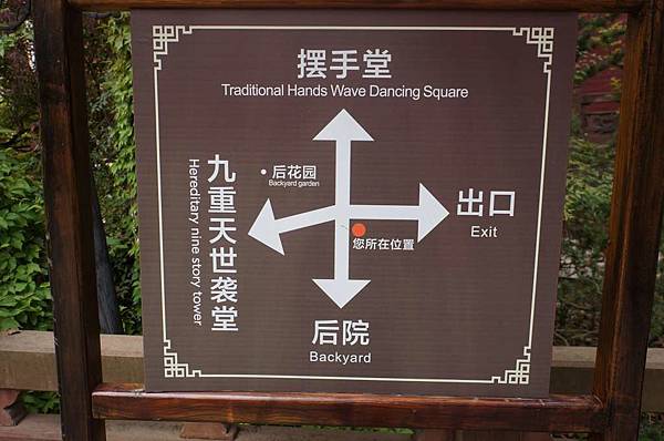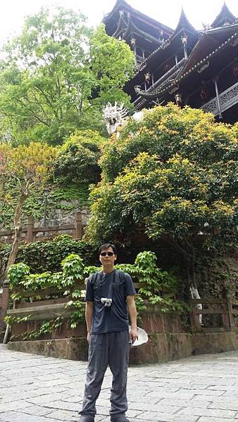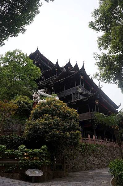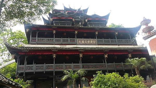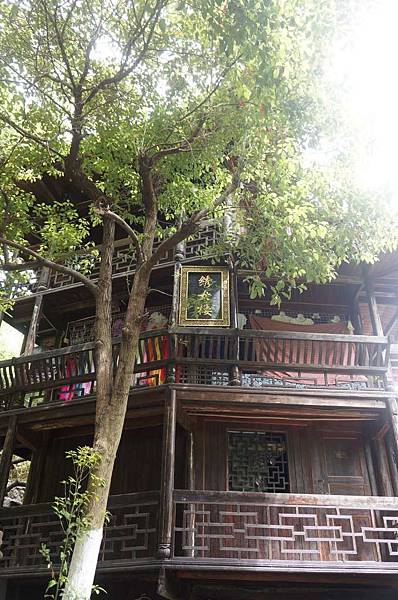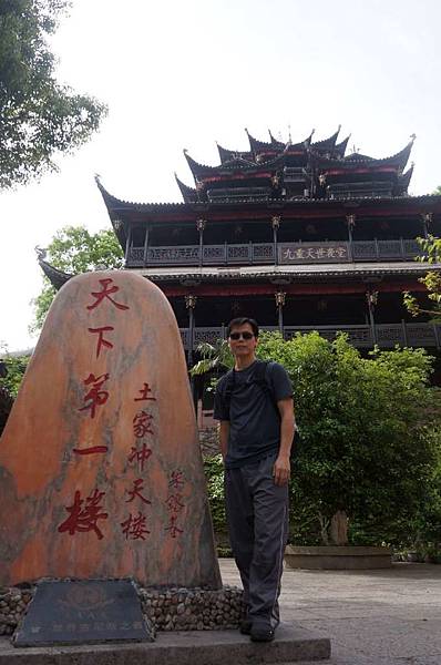 九重天堪稱土家吊腳樓建築史上的奇蹟,樓高48米,九重十二層,共12層的吊腳樓,整棟樓竟沒有一根鐵釘,依地勢巧妙構築,飛簷翹角,堪稱土家吊腳樓建築史上的奇蹟,稱為湘西第一樓,保持很完整的樓閣,由樓上延伸而下的白龍是一座排水管,除了有氣宇軒昂的外表,也有實質的功能。
