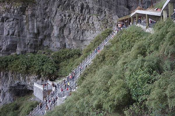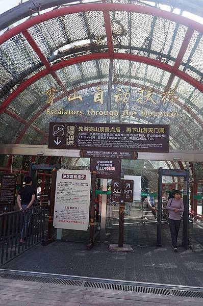 再從天門洞旁邊搭穿山扶梯下去