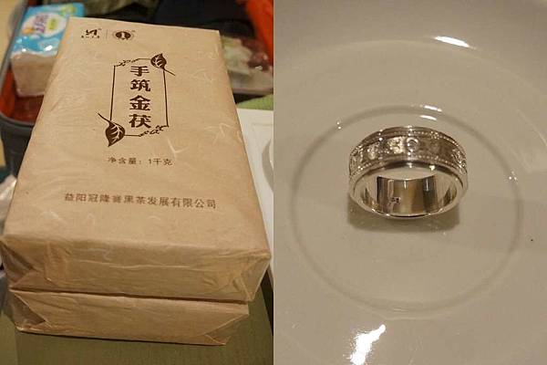 老哥買的黑茶茶磚及銀戒。