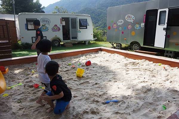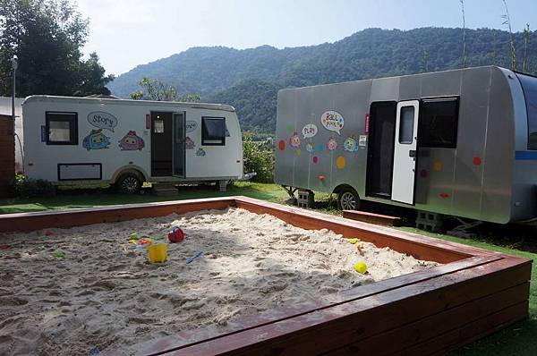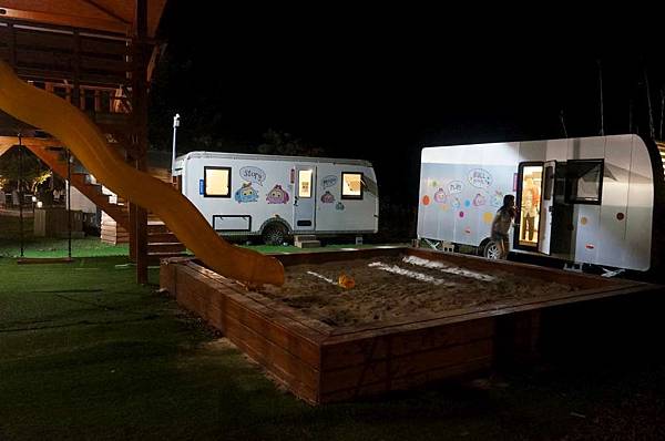 小朋友就在這二台露營車裡玩