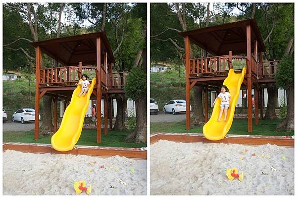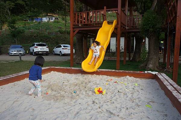 溜滑梯下來就到沙坑