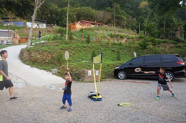 比比和比爸準備打羽球